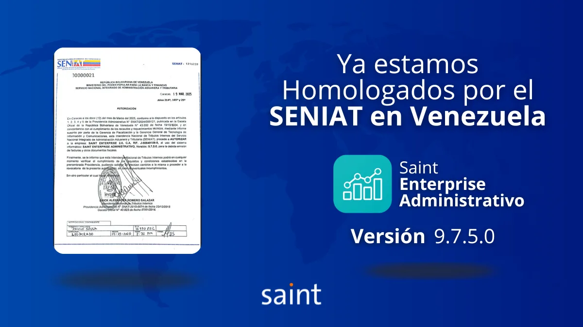 Reafirmamos nuestro compromiso con la transparencia y el cumplimiento de las regulaciones legales, Nos complace anunciar que la versión homologada 9.7.5.0 de nuestra aplicación SAINT Enterprise Administrativo, estará disponible próximamente, Esta nueva versión refleja nuestro compromiso constante con la excelencia.